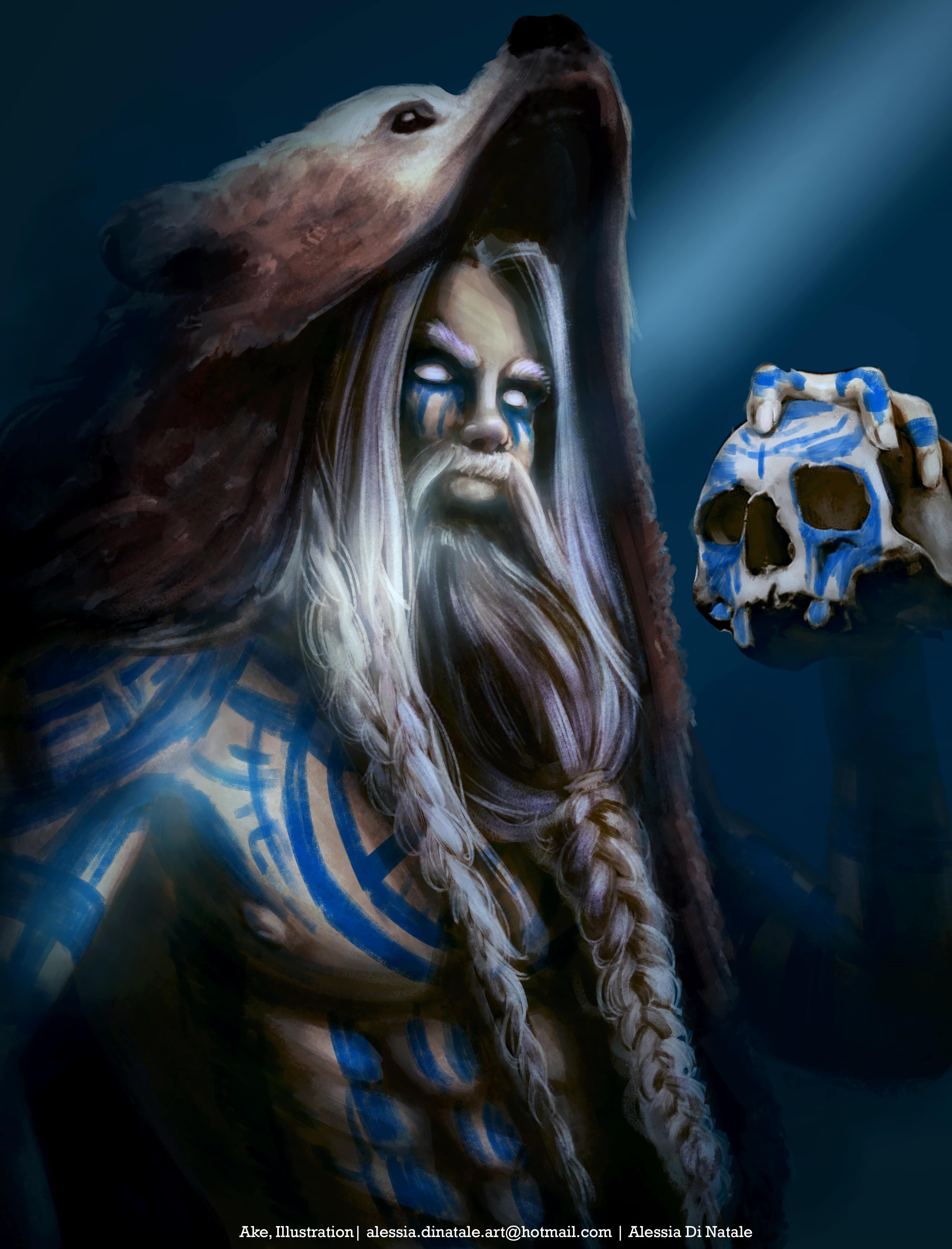 Lo sciamano gode di una pessima reputazione, che lo ha portato ad essere allontanato dal suo villaggio natio: si sparsero diverse voci secondo cui l'uomo avesse il potere di comunicare con gli dei in persona, e ciò lo avrebbe reso un essere pericoloso agli occhi degli abitanti. Incompreso e allontanato dalla società, Ake iniziò quindi a vivere nella foresta, circondato dall'atmosfera selvaggia che imparò a chiamare "casa", e prendendo l'abitudine di portare sempre con sé un teschio, chiamato Grùdd, che gli teneva compagnia.