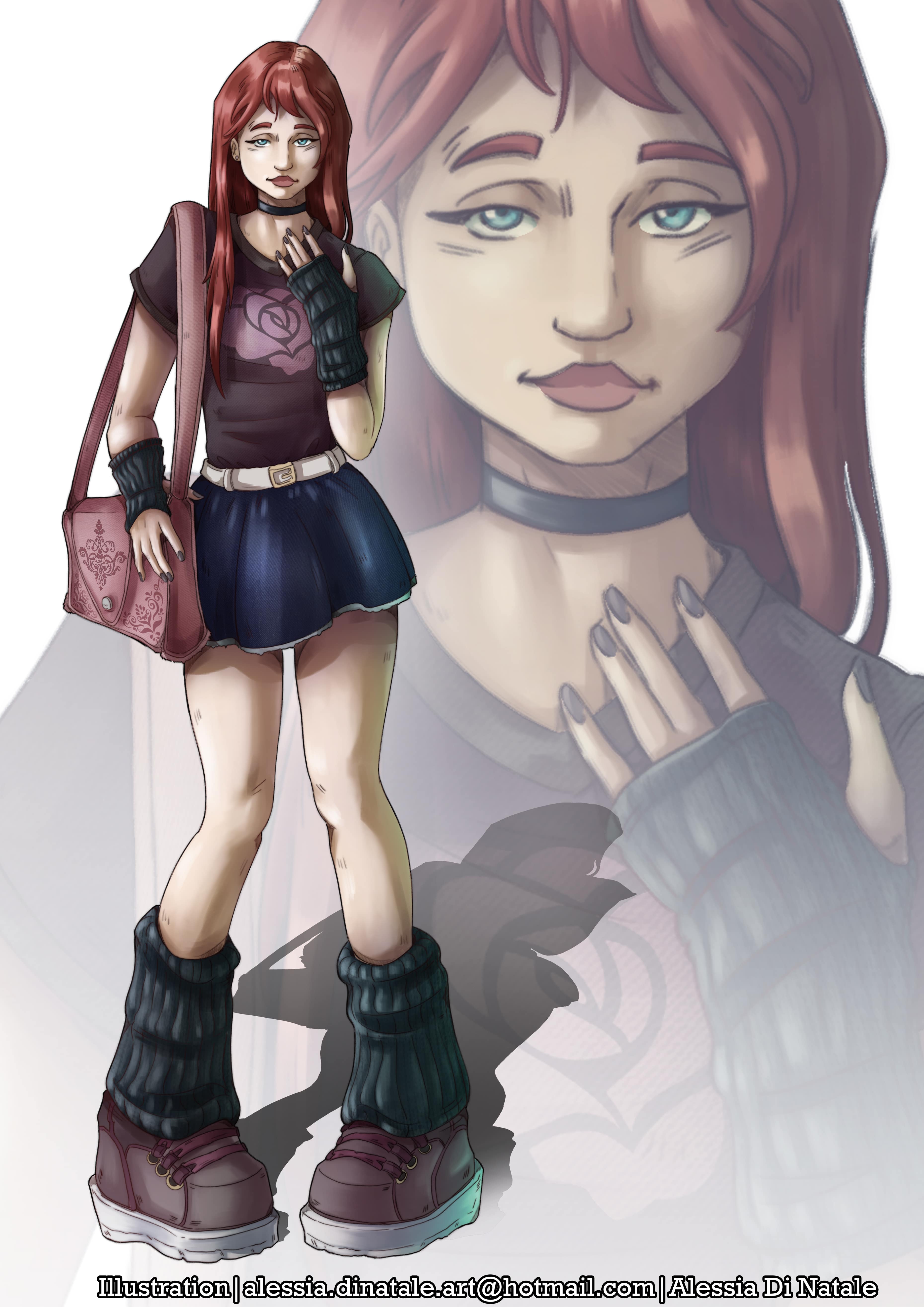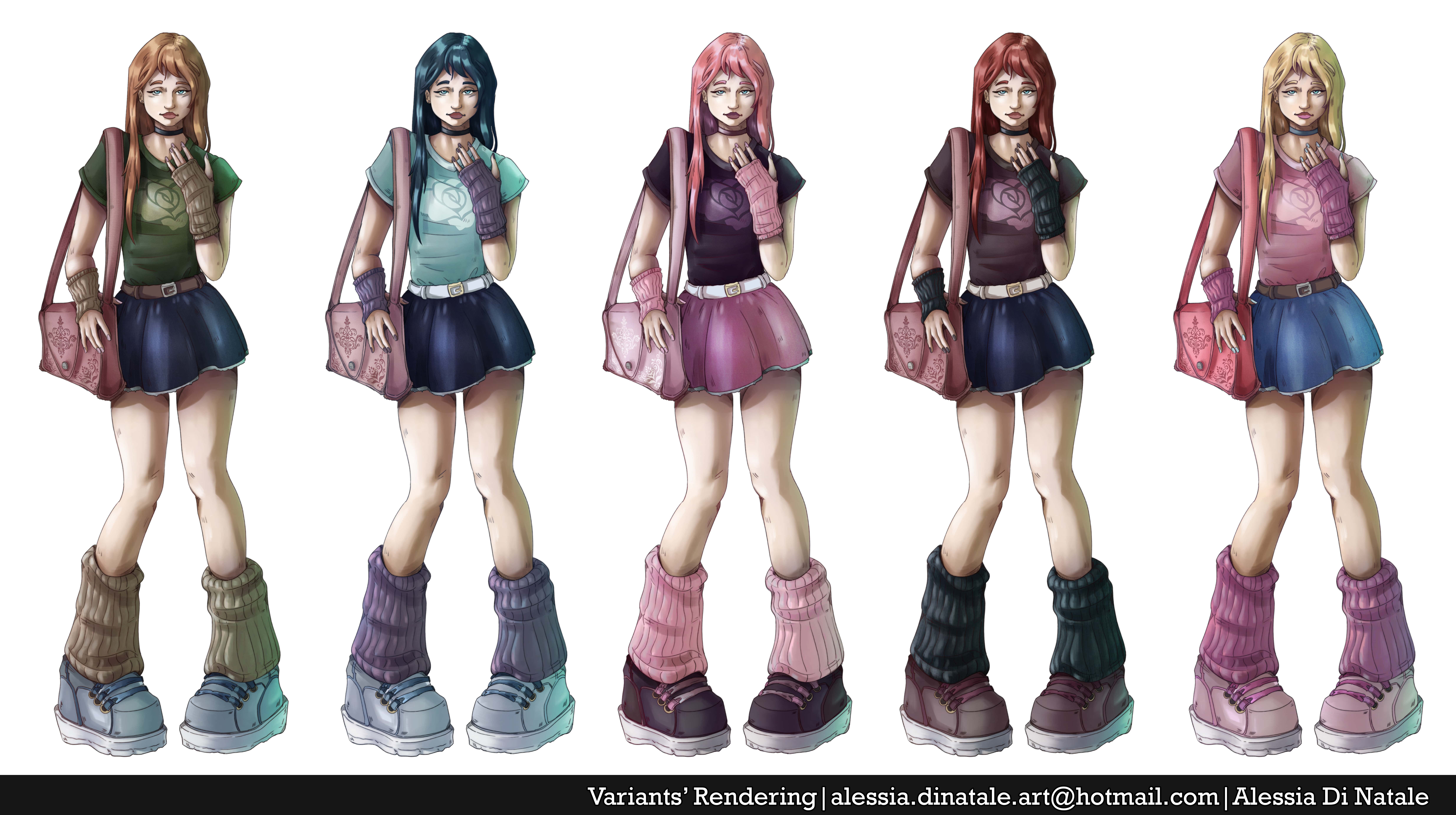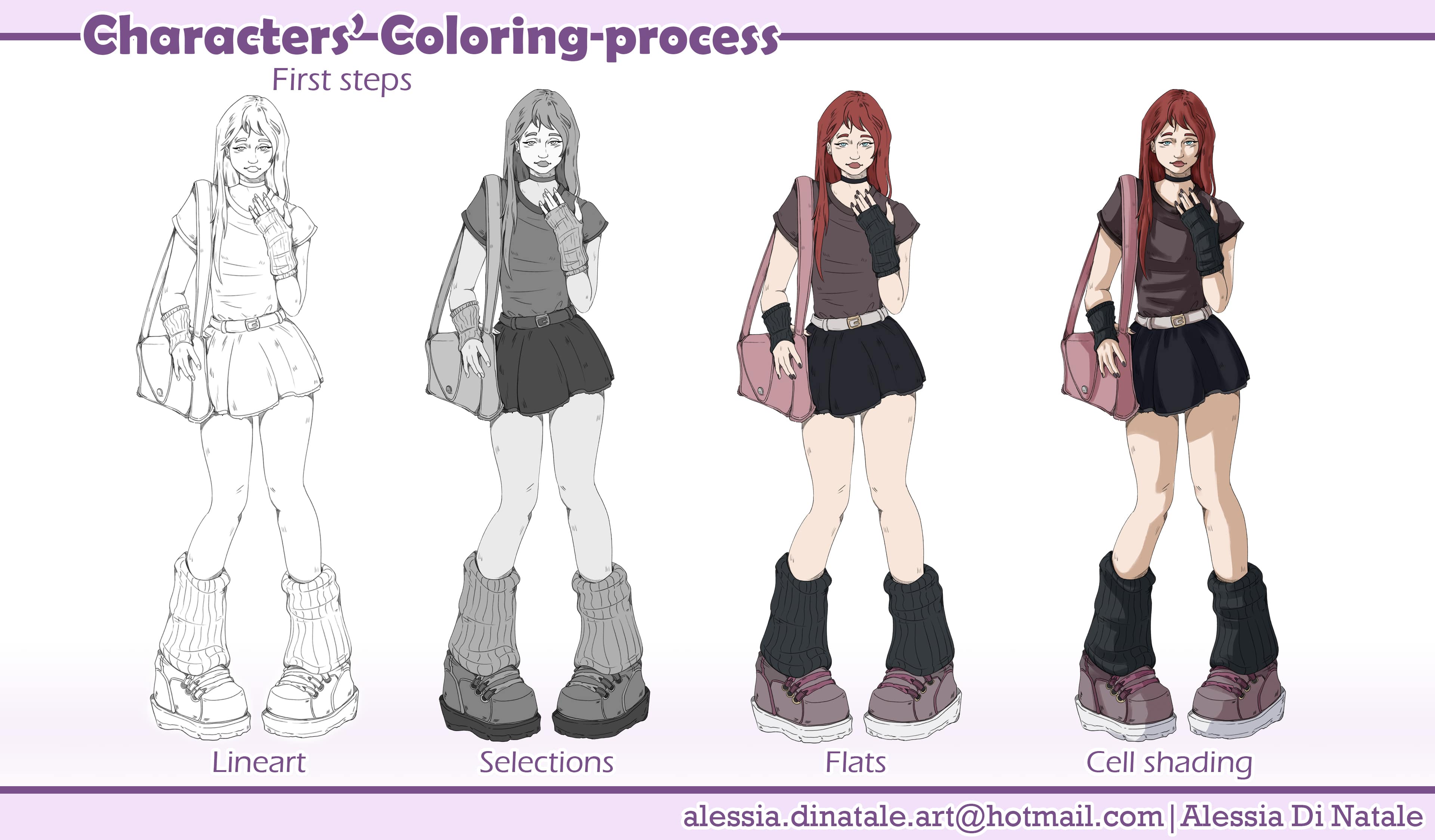 Illustrazione realizzata come esercizio di colorazione digitale. Partendo da una semplice lineart, ho "selezionato" le varie parti del personaggio con diverse sfumature di grigio, per poi studiare una palette inserendo dei colori piatti e piazzando le prime ombre in "cell-shading". Per finire ho terminato il lavoro di rendering, proponendo più varianti di palette e di mood.