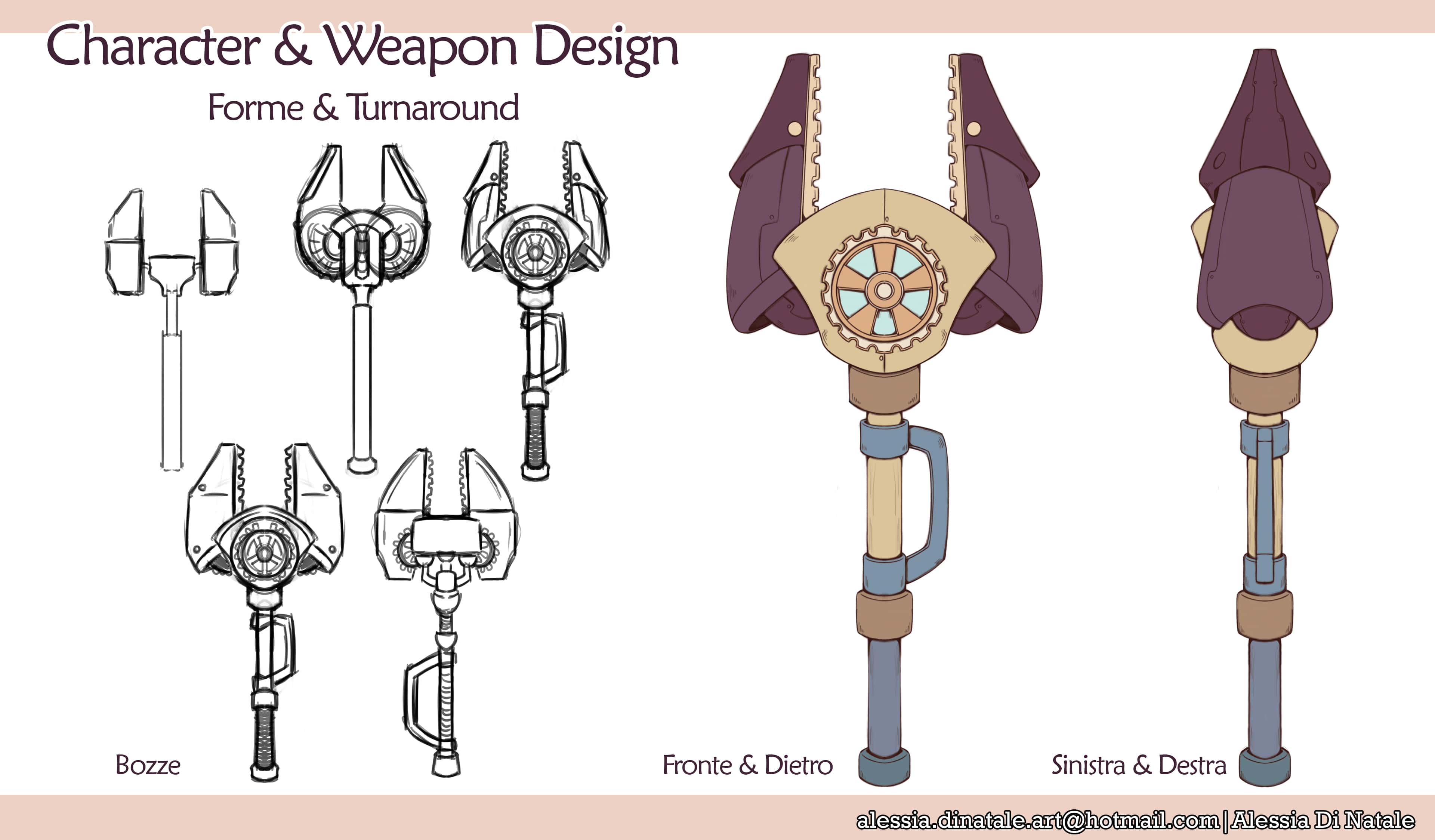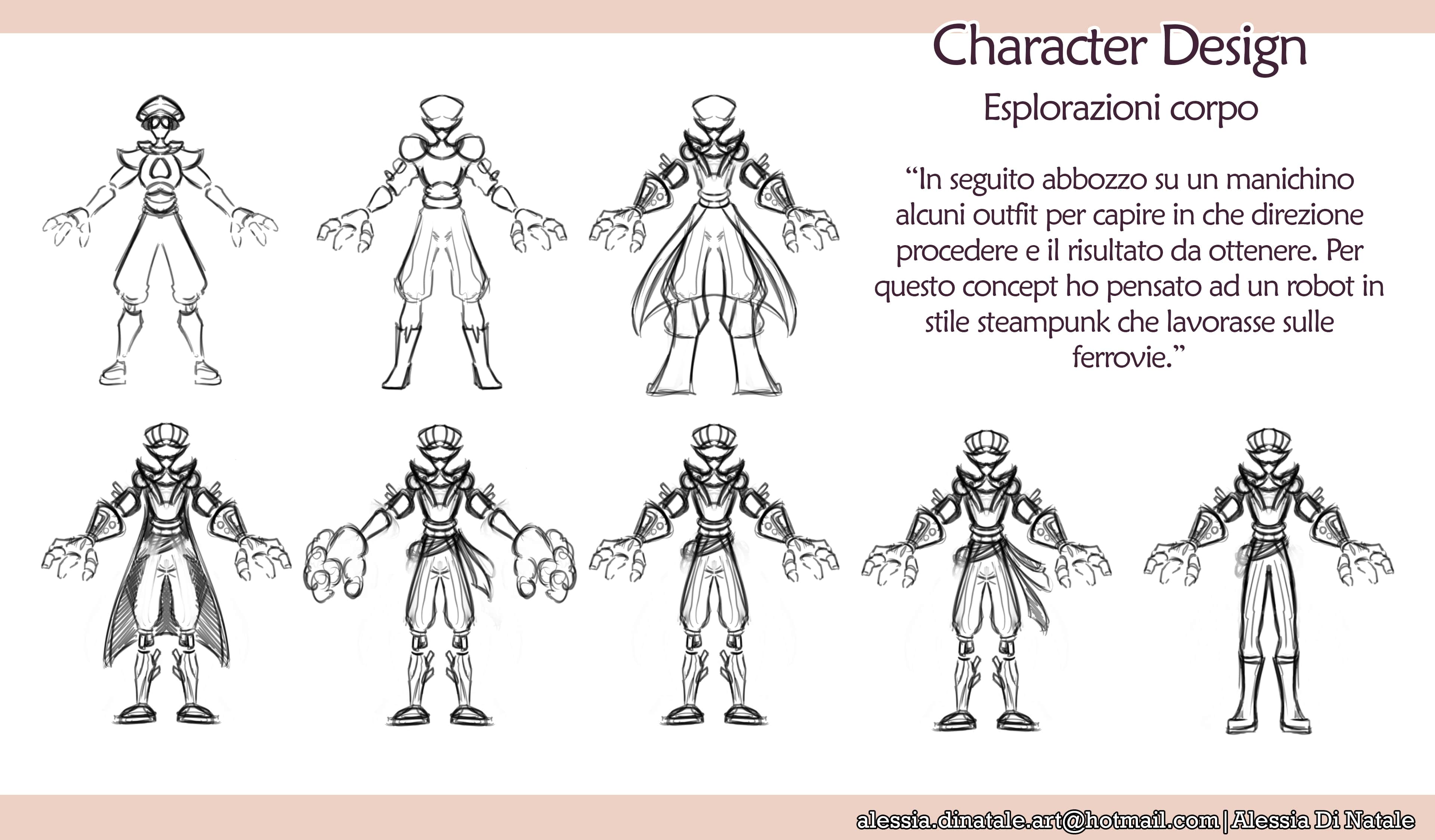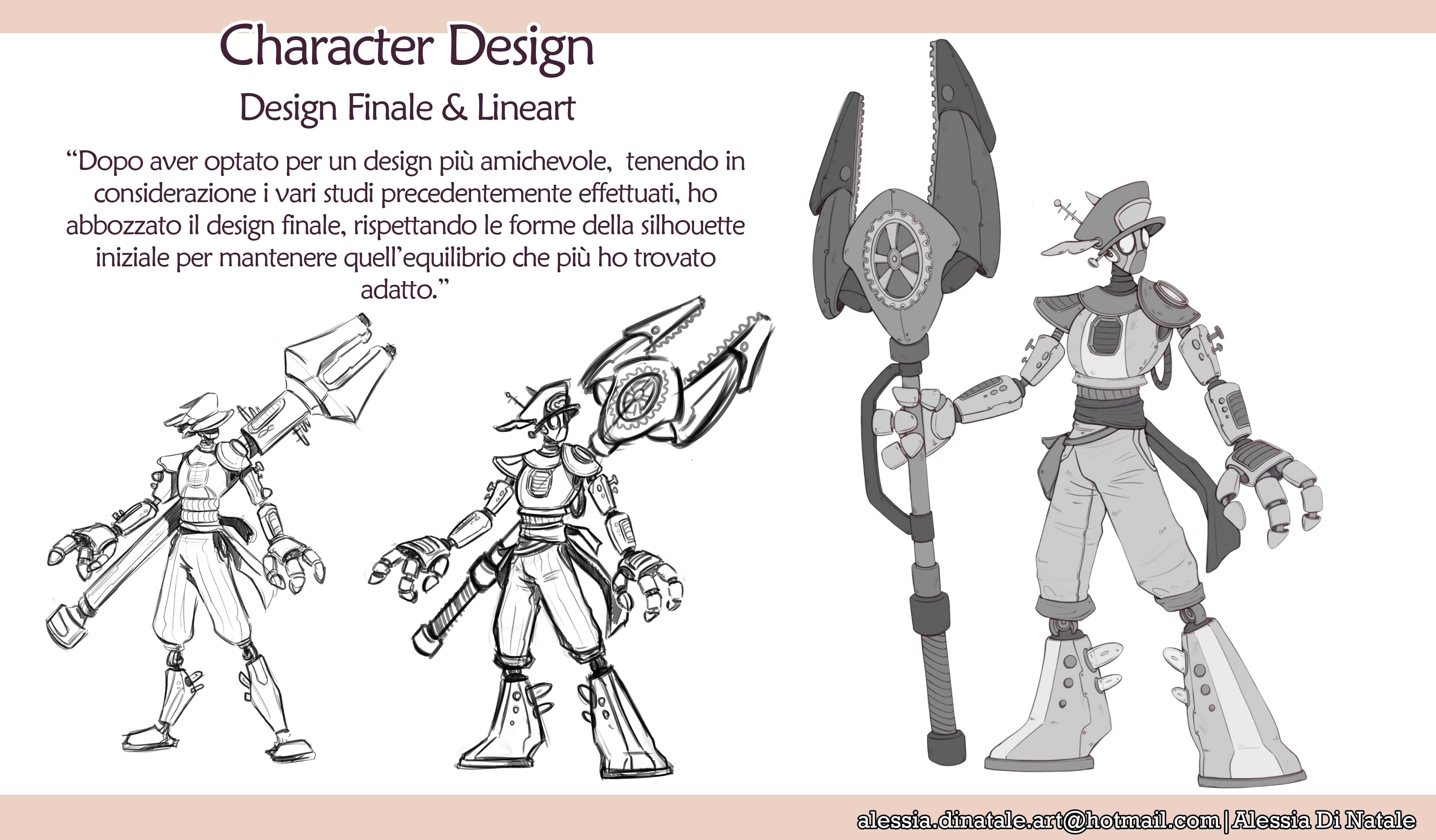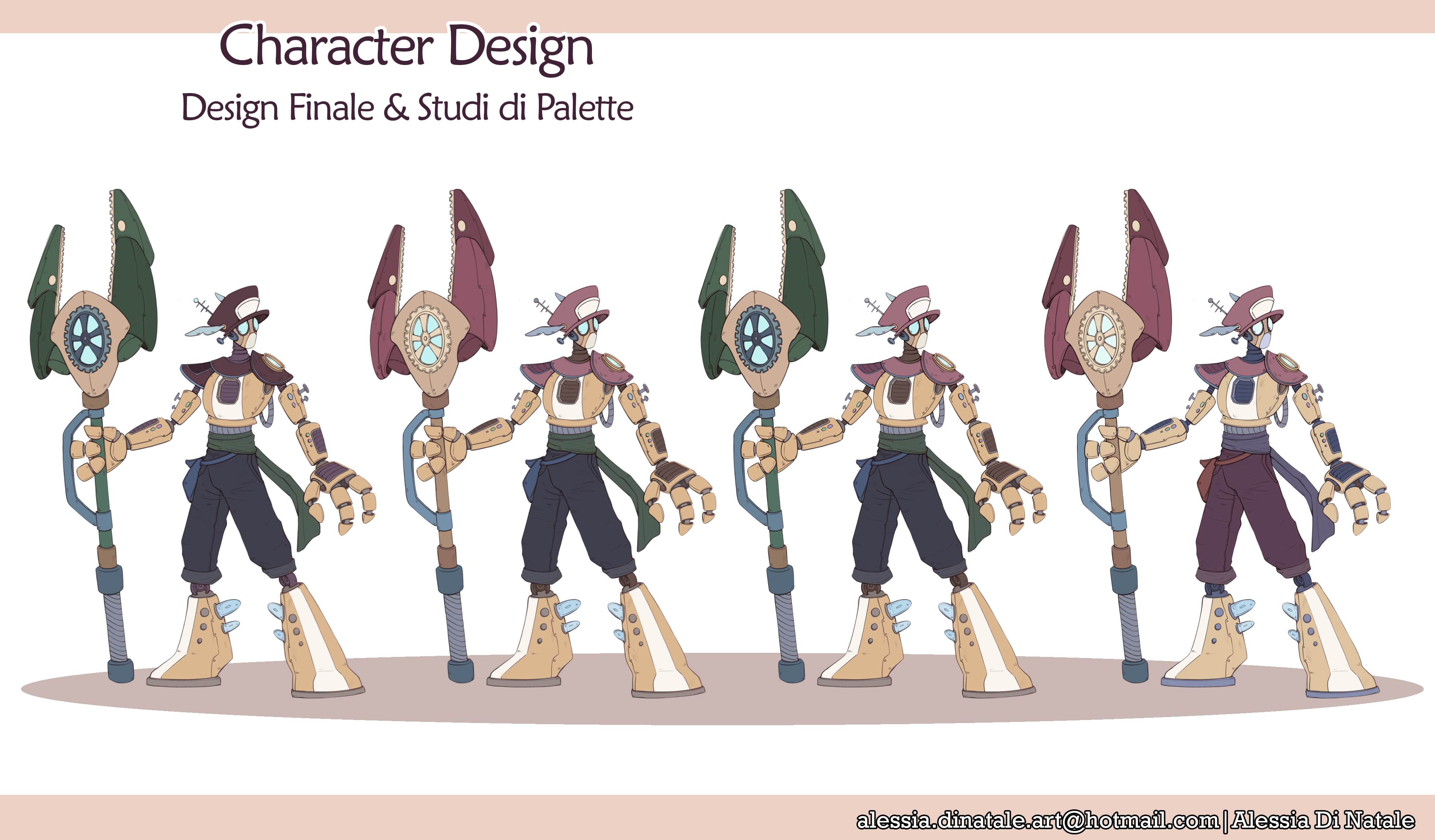 Studio di Character Design che ho realizzato come esercizio personale, completo di Shape Design, Rendering e Turnaround adatto alla modellazione 3D del personaggio.