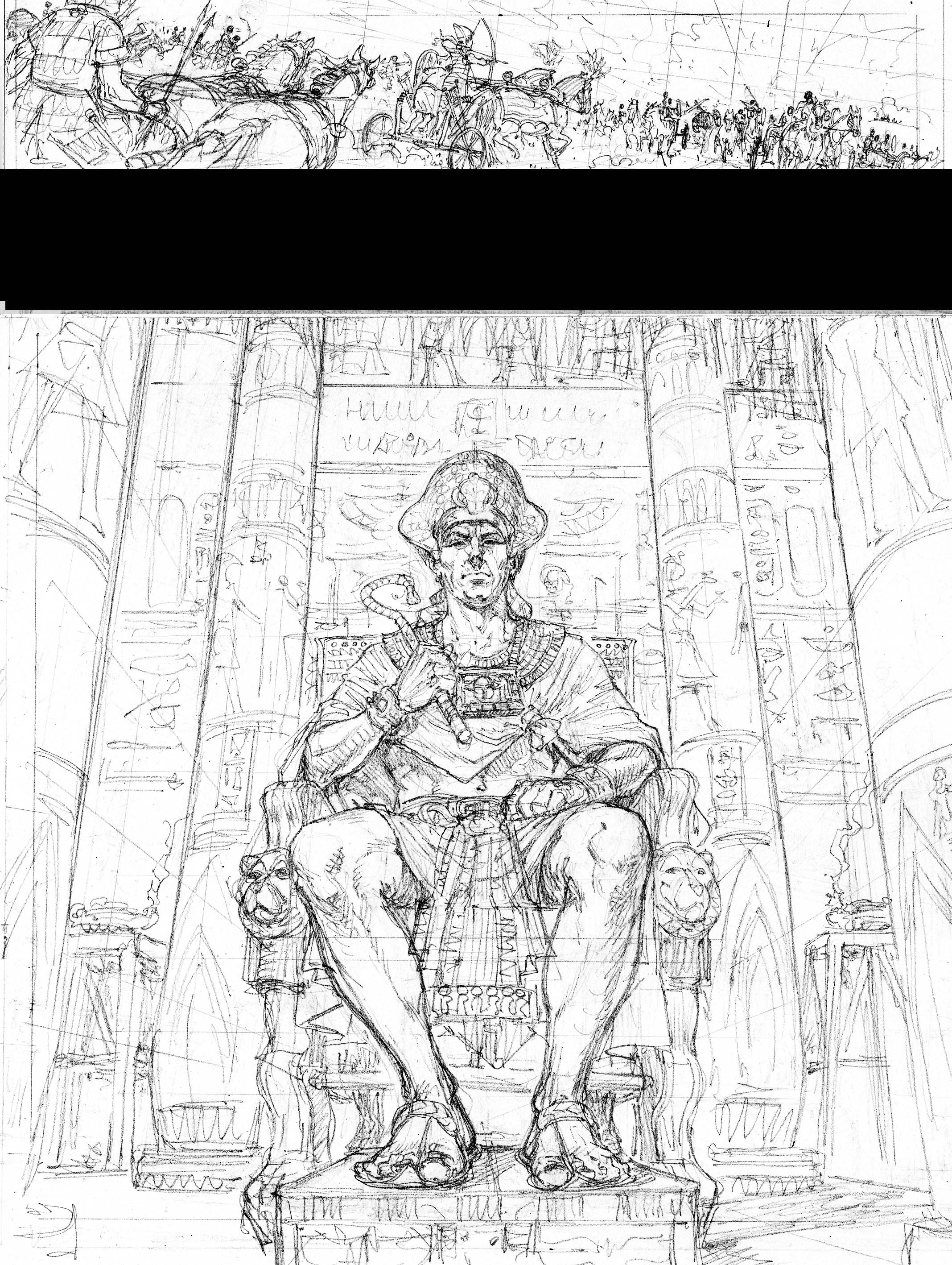 Illustrazione definitiva,matita e sketch per la cover di Ramses II edito da Glenat sulla collana Ils Ont Fait l'Histoire nel 2023