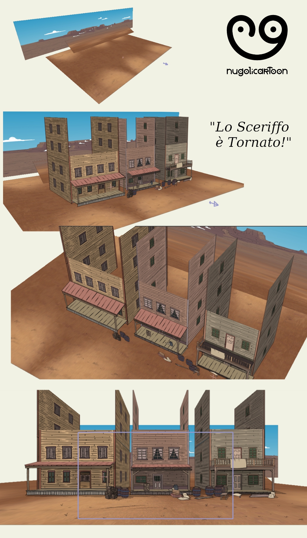 Una delle tanti fasi di realizzazione de "LoSceriffo è Tornato!"- Ho realizzato da solo tutta la grafica; dallo storyboard,ai fondali,fino alle animazioni e agli effetti visivi,compreso il character design. Regia di Paola Maccaroni