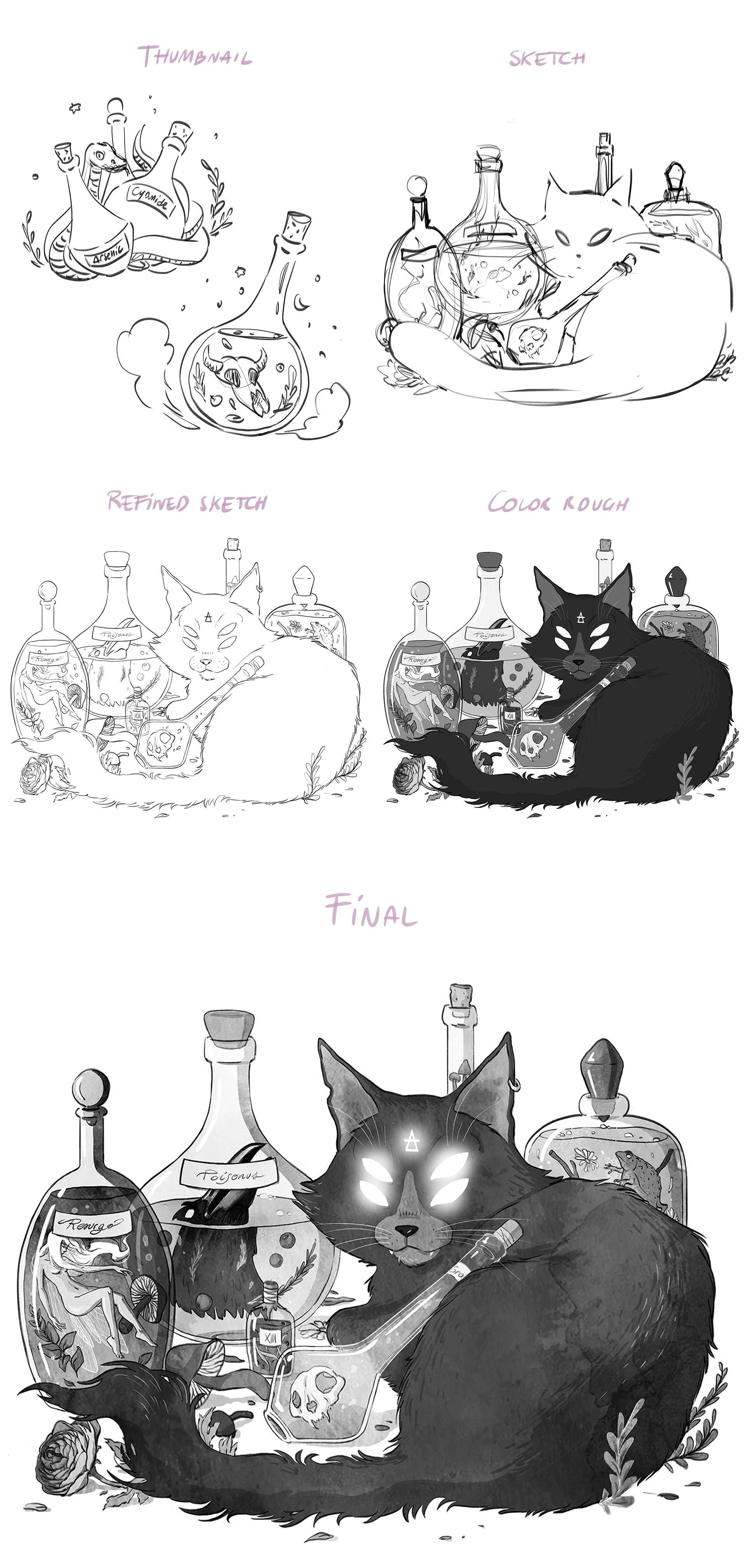 Illustrazione della copertina del Grimorio di Last Sabbath, GDR da tavolo illustrato da Loputyn ed edito da Shockdom e Officina Meningi