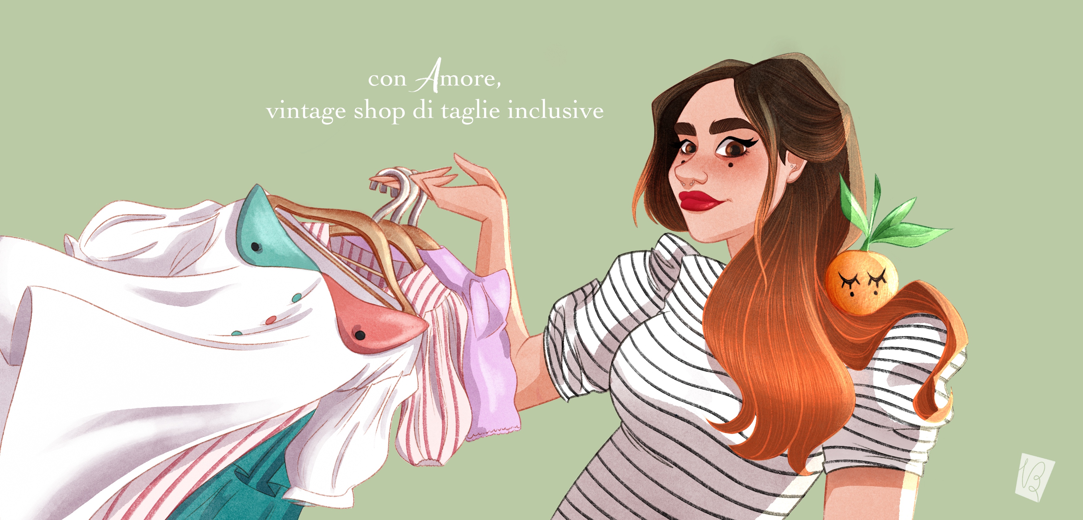 Illustrazione realizzata per la landing page del sito web di abiti vintage della cliente.